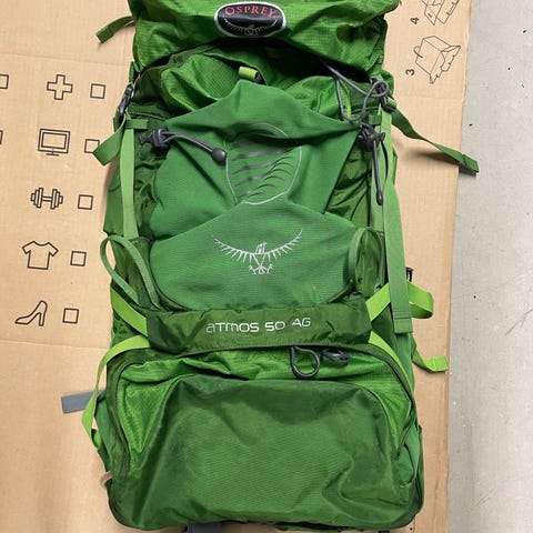 Osprey Rook 50 tursekk med volum på 50 liter i grønn farge. Sekken har toppåpning med lokk, kompresjonsreimer på sidene og festepunkter for utstyr.