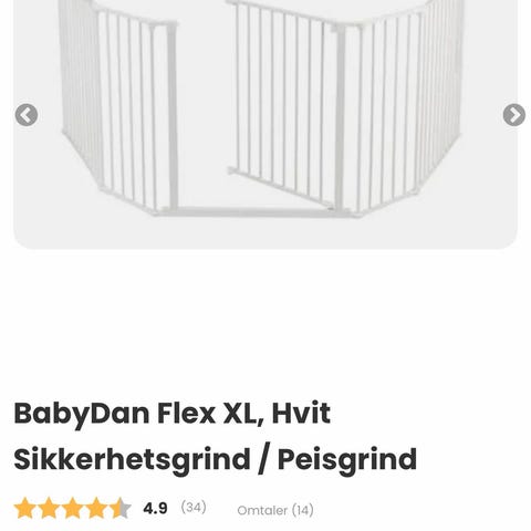 Selger en vegghengt sikkerhetsgrind 90 til 278cm fra BabyDan. Det er et utvidbart System i hvit. Kjøpte den for 1 år siden for 1 090 kr.