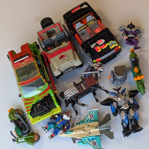 Selger en liten ladning med gamle actionfigurer og leker. Her er det turtles tmnt, star wars fra kenner, motu masters of the universe og litt knock off figurer.