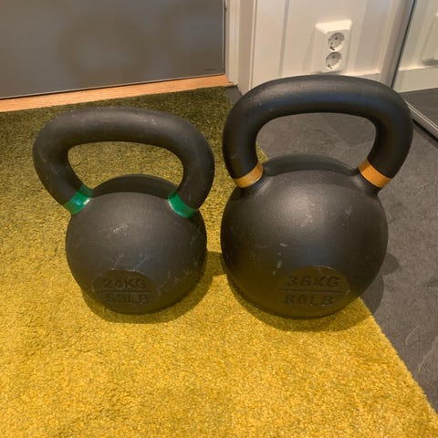 Sportsmaster competition kettlebell sett bestående av tre kettlebells i stål. Vektene er 16 kg (gul), 20 kg (lilla) og 24 kg (grønn). Hver kettlebell har bredt håndtak i metall som gir godt grep ved ulike styrkeøvelser. Egnet til funksjonell trening, styrketrening og kondisjonsøvelser hjemme eller på treningsrom.