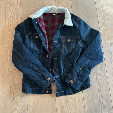 Detroit Denim Department olajakke for gutt i størrelse 158. Jakken er laget i denim i blå farge. Klassisk modell med krage, knappelukking foran og brystlommer med klaff og knapp. Justerbare hemper med knapper nederst på ryggen. Passer som ytterplagg i overgangssesonger eller som lett jakke over genser eller t-skjorte.Jakke fra USA/vintage
