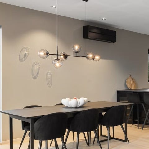 Buet gulvlampe i krom fra Bolia med flott marmorfot