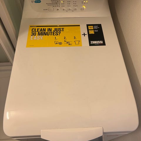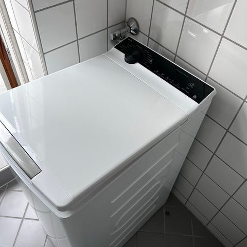 Whirlpool toppmatet vaskemaskin. Egnet for plassering der det er begrenset gulvplass foran maskinen.