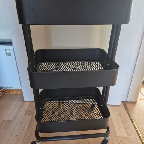 Egnet som oppbevaringsvogn på kjøkken, kontor, hobbyrom eller bad. Ca. mål ifølge produktbilde: 35 x 45 x 77 cm (bredde x lengde x høyde).