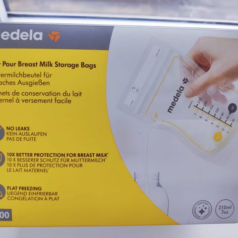 Medela Easy Pour oppbevaringsposer for brystmelk. Pakken inneholder 25 engangsposer beregnet for oppbevaring og nedfrysing av brystmelk. Posene har dobbel lukking for å redusere risiko for lekkasje og er forhåndssteriliserte. Hver pose har måleskala og skrivefelt for merking av dato og mengde. Posene er flate for plassbesparende lagring i fryser eller kjøleskap og kan stå oppreist ved fylling. Egnet til oppbevaring av utpumpet brystmelk hjemme eller på farten.