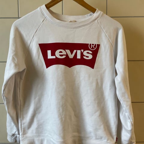 Levi's genser for dame i størrelse S. Genseren er rød med stort Levi's-logo på brystet. Rund hals og lange ermer. Egnet til hverdagsbruk og kan kombineres med ulike underdeler som jeans eller skjørt.