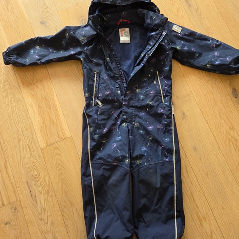 Suveren vanntett og vindtett dress for gjørmehavet i barnehage eller skole. Dressen har ingen betydelig slitasje, men har noen små flekker.
