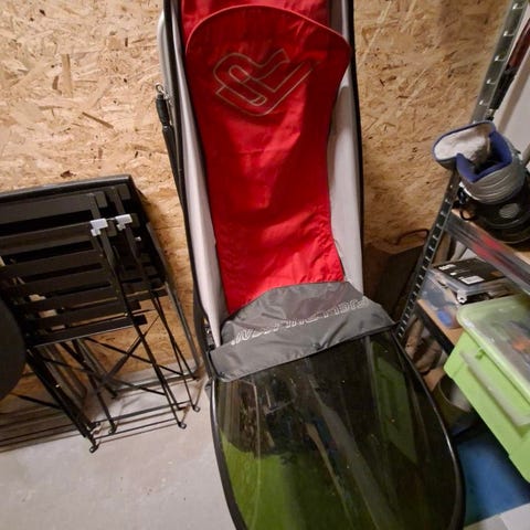 Pulken har ryggstøtte og trekk som omslutter barnet.
