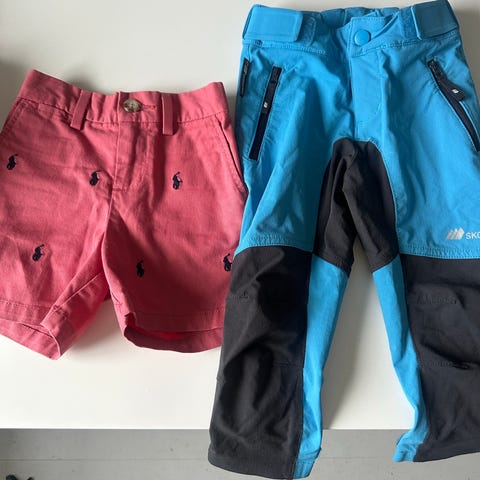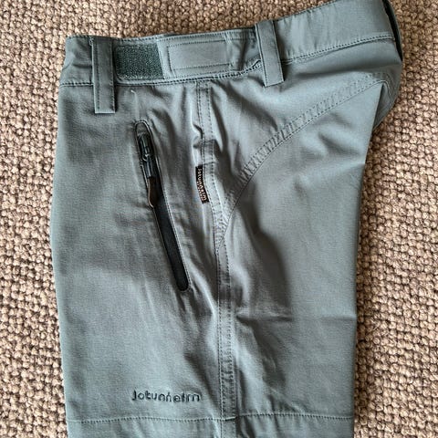 Jotunheim shorts for jente i størrelse 128. Shortsene er rosa og laget i polyamid. De har elastisk linning, beltehemper og glidelåslommer foran. Egnet som fritids- eller turshorts for barn. De er pent brukt, men på den lilla shortsen er det to små flekker (markert på bilde). Ikke synlig om man ikke vet de er der.