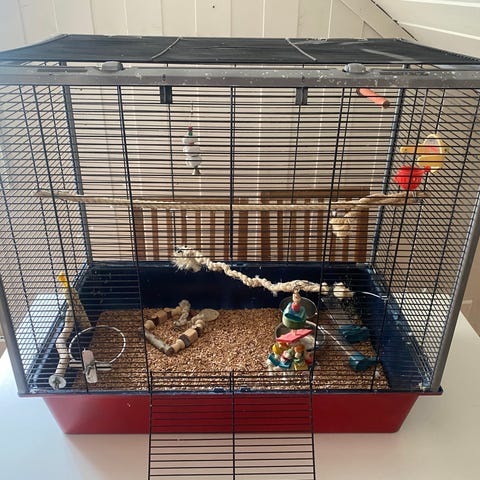 Selge bur med utstyr og 3 stk Undulat