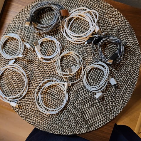 5 stk Apple ladere og ladekabler Lightning USB i ulike lengder.