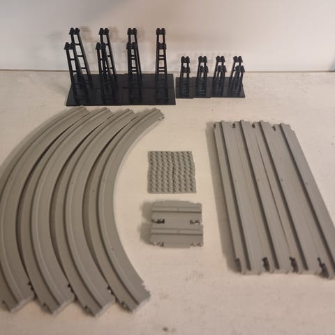 LEGO City togbaneskinner i grå plast. Settet består av 9 rette (ca. 114 cm), 14 buede (ca 175 cm) samt 25 fleksi (ca 80 cm) egnet for bygging og utvidelse av LEGO City togbane. Total lengde ca 369 cm. Delene kan kombineres med andre kompatible LEGO togdeler og brukes til å lage ulike sporoppsett på byggeplaten eller andre flater.