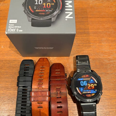 Følger med original reim i sort og i orange.