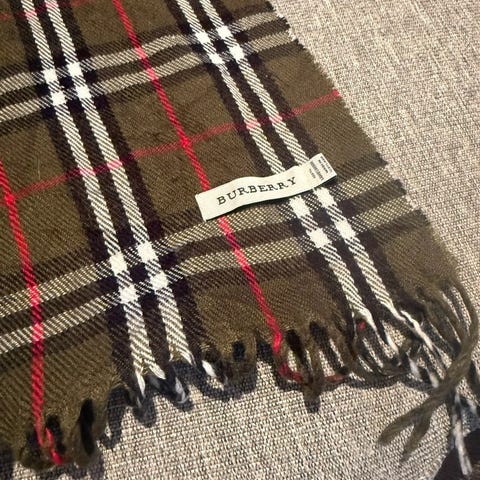 Elegant Burberry skjerf i rødt og grønt rutemønster. Lite brukt og i fin stand. Klassisk tilbehør som passer til mange antrekk.
