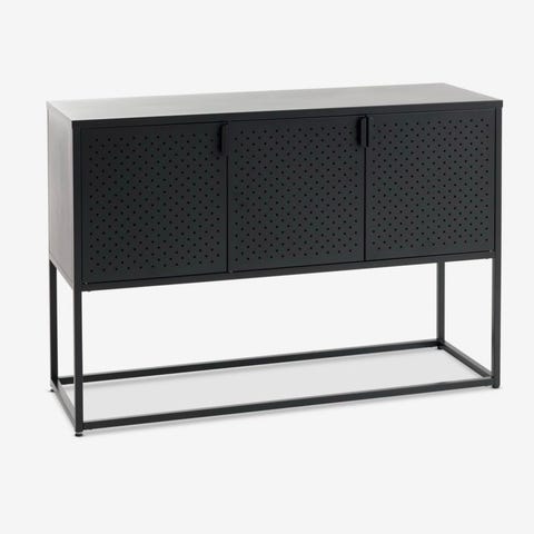 TV-benk Virka fra danske WOUD, svart og eik på metallunderstell