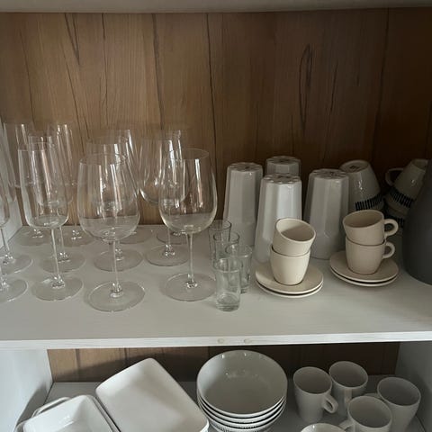 Diverse kjøkkenutstyr (glass, bestikk, kopper mm)