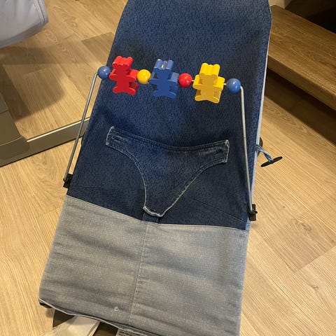 Selger en nokså godt bruk (se anmerkning), men mye bruk igjen Babybjørn vippestol med leke.