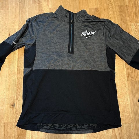 Nike Dri-Fit Adv løpe-singlet for herre i størrelse L. Singlet i lett og pustende materiale med perforerte felt for bedre ventilasjon. Fargekombinasjon svart med røde skrå striper foran og ensfarget svart bak. Erm- og skulderparti er utformet for god bevegelsesfrihet ved løping og annen trening. Passer til løping og annen utholdenhetstrening.