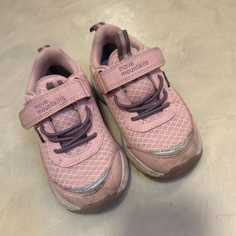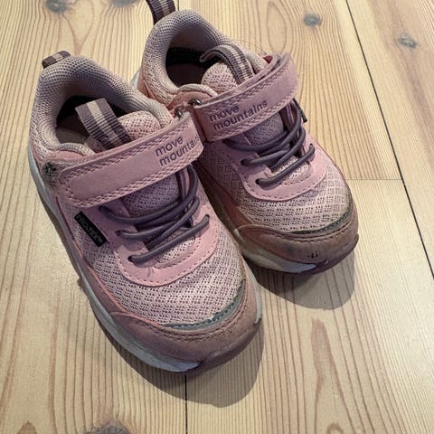 Vanntette joggesko fra Move Mountain i str. 23. Noe synlig slitasje på tuppen men mye bruk igjen.