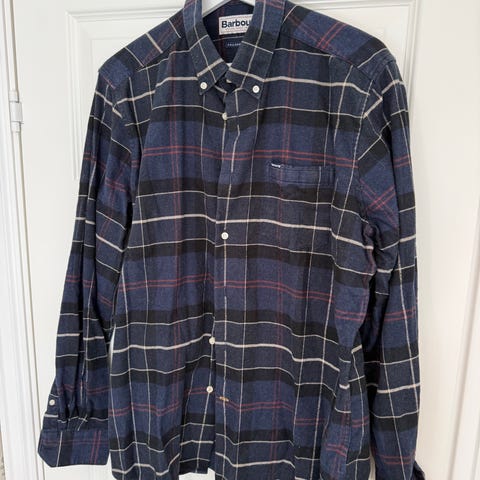 Selger en helt nydelig skjorte fra Britiske Barbour i en tøff ruting i marineblå!