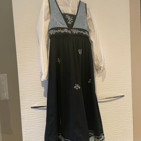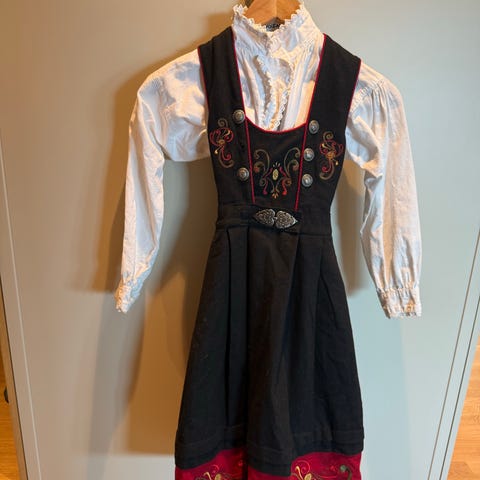 Nydelig festdrakt for jente 12 år, med drakt, hvit bunadsskjorte og sølje i ekte sølv