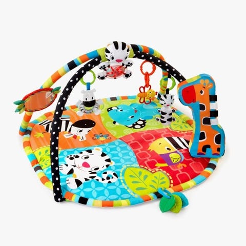 Spots and Stripes Safari fra Bright Starts er et morsomt leketeppe og babygym med spennende farger, mønster, lyder og leker som stimulerer barnet ditt.