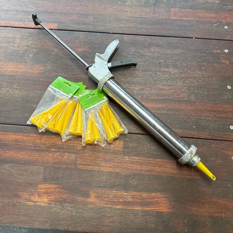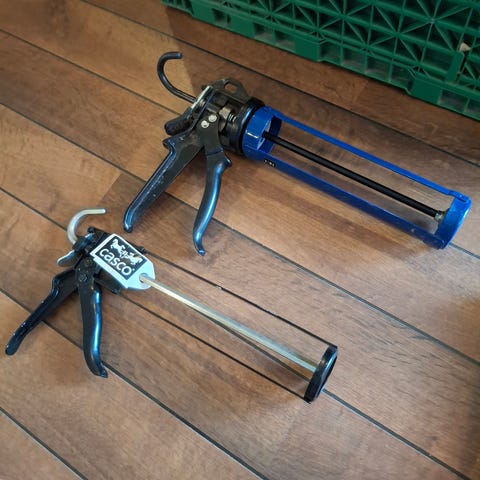 3 stk fugepistoler selges samlet. Kun brukt av én rørlegger i eget rørleggerfirma som nå er nedlagt. Kjøpt på Brødrene Dahl.