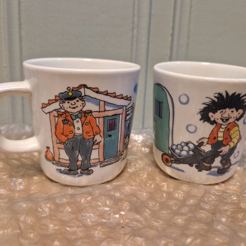 Klassiske motiver med klare farger – typisk 80/90-talls design. Perfekt for samlere eller for deg som vil ha litt nostalgisk barndomsfølelse ☕️