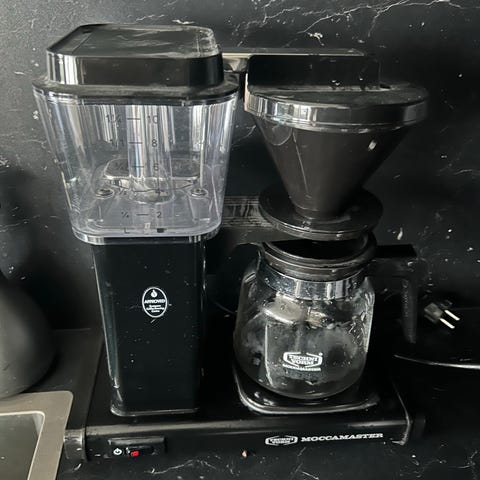 Moccamaster Cup-one kaffetrakter i svart utførelse. Modellen er beregnet for brygging av én kopp kaffe direkte i medfølgende kopp eller annen passende beholder. Kaffetrakteren har enkel av/på-bryter på fronten og kompakt design som tar liten plass på benken. Passer godt til bruk på kjøkken, kontor eller andre steder der det er behov for å brygge én kopp kaffe om gangen.