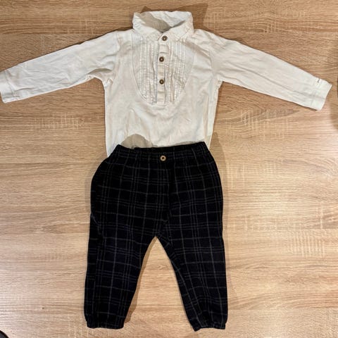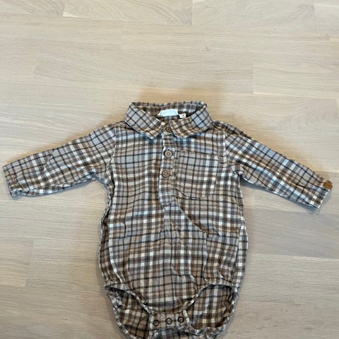 Søt shortebody med krage og rutemønster i lyse grønntoner med små dinosaurer. Fin liten detalj som gir et klassisk uttrykk.