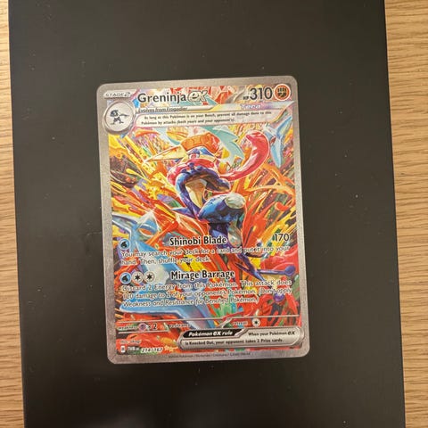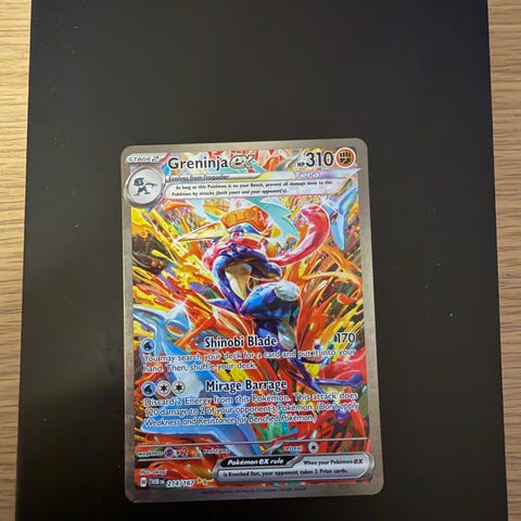 Selger dette pene Greninja Pokemon kortet som er en promo fra en Shrouded Fable boks. Kortet har vært i sleeve og toploader siden det ble tatt ut av produktet.