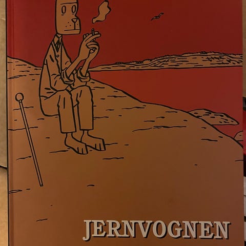 Selger den grafiske tegneserieromanen Järnvagnen, skapt av den anerkjente norske tegneserieskaperen Jason (John Arne Sæterøy).