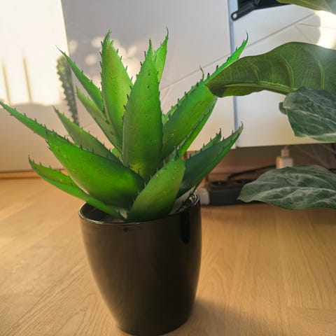 Dekorativ kunstig aloe vera plante i hvit potte med strukturert mønster🪴🤍