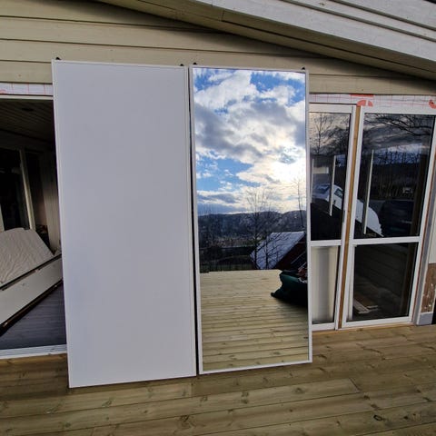 Skyvedørsgarderobe fra Elfa med speildører og innredning