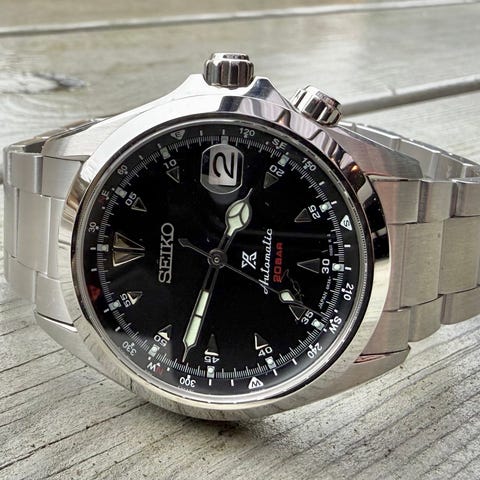 Seiko Prospex Alpinist SPB117J1 komplett sett med ytter- og innerboks. Meget pen. Selges med ny Jubilee lenke, kjøpt hos Tidssonen. Orginal lenke er ubrukt.