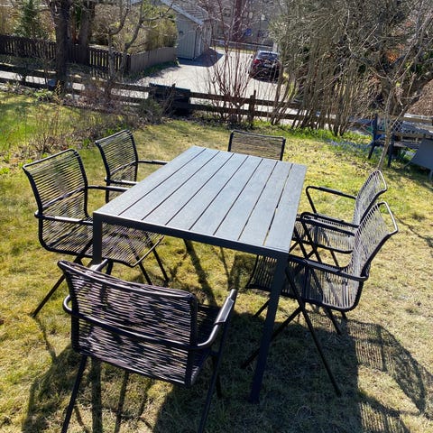 Ett bord og 8 stoler ( to til like som ikke er på bildet )