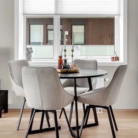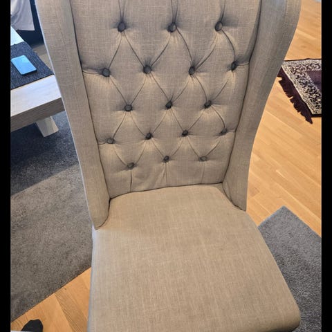Møbelringen spisestol i blått tekstiltrekk. Passer som spisestuestol eller ekstra sitteplass i oppholdsrom. 8 Stk. Spisestol trukket i mørkegrått stoff med høy rygg og polstret sete. Stolen har svarte metallbein i meiesokkel som gir lett svikt. Sitteplass i stue eller kjøkken. Nøytralt design som gjør at stolen kan kombineres med ulike bord og interiørstiler