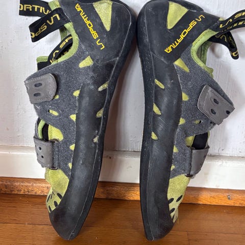Black Diamond Momentum klatresko i svart farge. Modellen har to borrelåsstropper over vristen for enkel justering og av/på. Skoene har flat profil og gummisåle som gir godt friksjonsgrep mot klatrevegger og stein. Egner seg til innendørs klatring og utendørs sportsklatring. Passer for klatrere som ønsker en komfortabel allround-klatresko. Størrelse 42,5. De ble for store for meg så er brukt en gang.