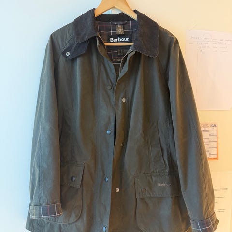 Nydelig jakke, dame modell, litt innsving, ull inni, kjøpt i London men har mes æt hengt til pynt, ikke noe skader eller mangler