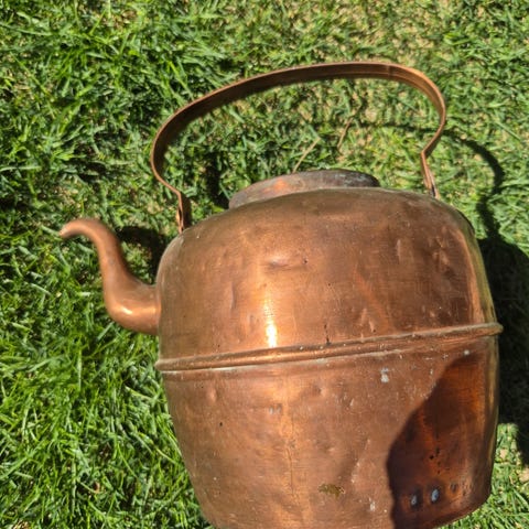 Vannkjele i aluminium med stor bærehank. Kannen har lokk med knott på toppen og helletut i front. Overflaten er sølvfarget metall. Egnet til oppvarming av vann på komfyr eller tilsvarende varmeflate, avhengig av type komfyr og materiale i bunnen. 8 l. Fin på hytta til bålpanne