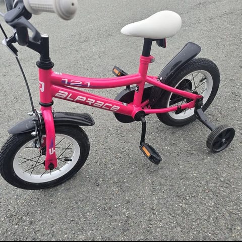 Fint brukt barnesykkel. 12". Inkludert støttehjul.