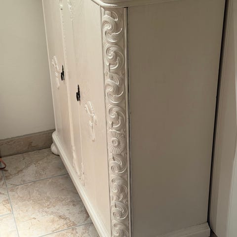 Fin og praktisk skjenk i oljet eik selges rimelig pga plassmangel. Noen vannmerker på topp-plate, blir bedre med litt pussing og olje.