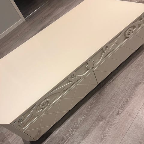 Stilig skap med skyvedør i glass – god lagringsplass