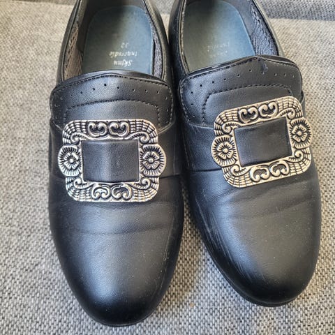 Bunadssko med liten hæl, str. 33. Pent brukt.