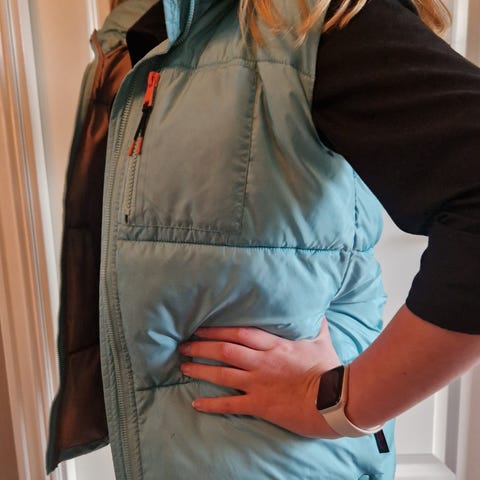 Selger en litt kul sort boblevest til jente. Str 146/152. Pent brukt.