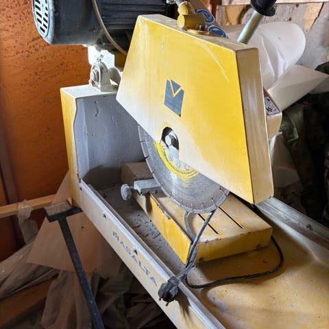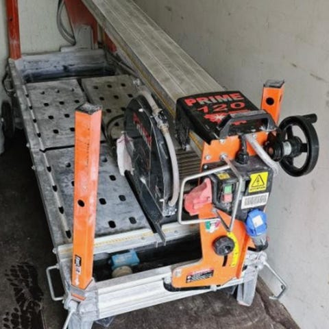 Selger en god og stødig vannsag på stativ. Har blitt brukt til å legge belegningsstein, kantstein og heller.