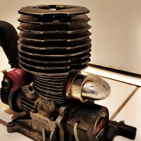 Graupner Varioprop C4 fjernkontroll og OS Maxx nitromotor til radiostyrt bil.