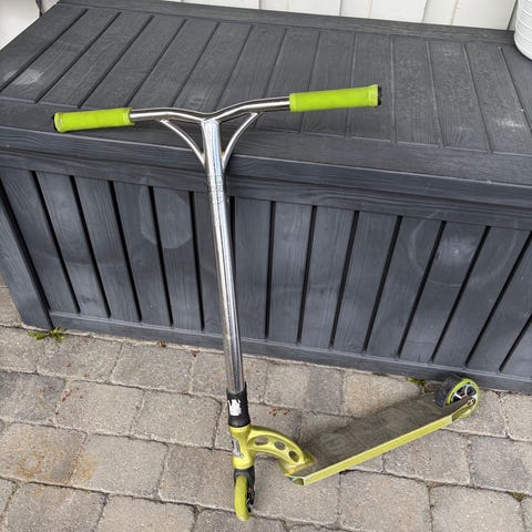 Sparkesykkel triksmodell for barn. Modellen har solid styre i metall og små hjul tilpasset triksing og kjøring på asfalt eller skatepark. Egnet for barn og unge som ønsker en enkel triksesparkesykkel til fritidsaktiviteter.