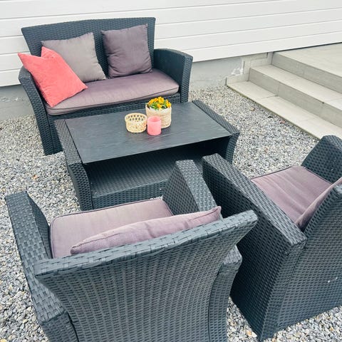 RESERVERT!! Hagesalong og to lenestoler med fotskammel og avlastningsbord