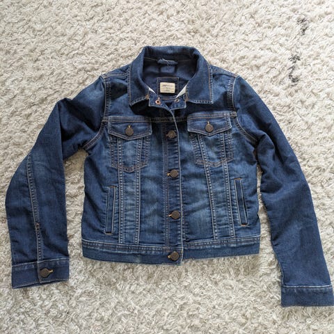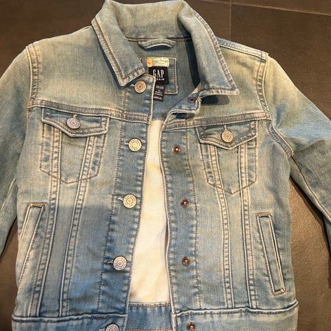 Zara olajakke for barn i størrelse 152, unisex. Jakken er i lys blå denim med klassisk krage, knappelukking foran og brystlommer med klaff og knapp. Justerbare knapper nederst på ermene og i linningen bak. Passer til hverdagsbruk og som lett ytterlag i overgangssesonger.